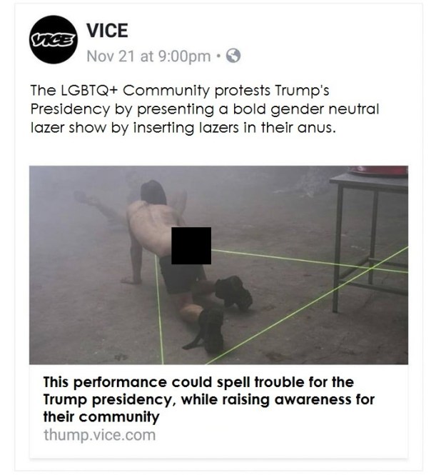 I really don’t understand what trouble this will cause for Trump, or what “awareness” will be raised, other than awareness of which way to point a burning beam of light. But any excuse for retarded behavior while calling it “art.”